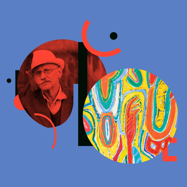 Formene og den opprinnelige fargebruken oppstod i 2014. Det var også da Pahr-Iversen introduserte dette peanøttliknende frøet - figuren til høyre som er den eneste som forblir uendret gjennom hele utviklingen. Denne kan vi kjenne igjen i de senere seriene, blant annet i Min fars hage og Det finnes i verden selsomme ting. Formen er sentral - om enn plassert perifert. Den omarmes ovenfra og nedenfra av figurer som ikke selv er fremhevende, enten fordi de har en tilbaketrukket tone (himmelblå) eller ved å fremstå som glorie (gul overmaling av det blå i 2014-bildet). Frøet inngår ikke i en vekstbevegelse, men hviler i seg selv. Venstre siden derimot preges av vekst ovenfra og nedenfra. Dermed blir det et spill mellom venstresidens vertikalitet og høyresidens stabilitet som leder blikket mot høyre - mot Frøet. Stengelen i midten (i mitt bilde) forsterker dette inntrykket. Den henvender seg til Frøet.